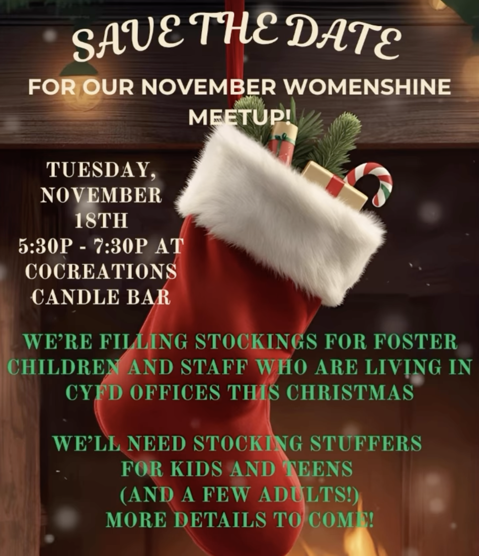 CoCreations Candle Bar and Decor 1751 Bellamah Ave NW, Albuquerque, NM, United StatesHELP US FILL STOCKINGS! Did you know that there are foster children who are LIVING in CYFD offices? Due to a shortage of foster homes, some children have nowhere else to go and will be spending their holidays at CYFD. Let’s help make their Christmas brighter by giving them stockings filled with goodies and love […]